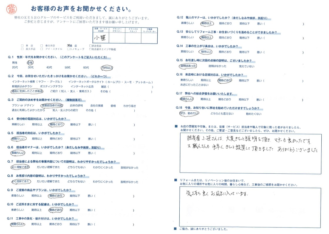 お店の雰囲気や印象。または、営業(サービス)担当者や職人で印象に残った者がおりましたら、お聞かせください。その他、ご要望・ご意見などございましたら、ぜひ、お聞かせください。