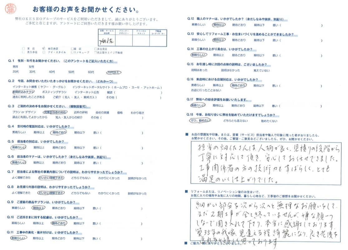 築35年の我が家、見違える程綺麗になり、良き老後を送れると嬉しく思っております。