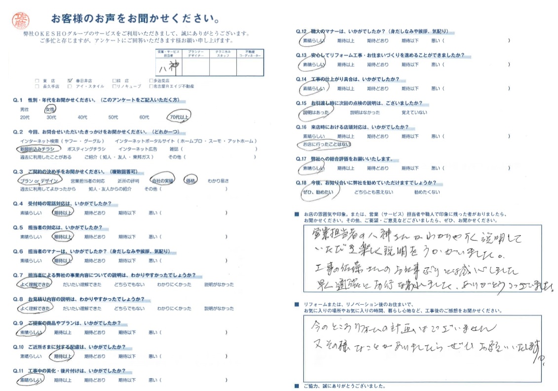 お店の雰囲気や印象。または、営業(サービス)担当者や職人で印象に残った者がおりましたら、お聞かせください。その他、ご要望・ご意見などございましたら、ぜひ、お聞かせください。