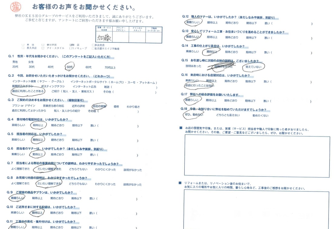 お客様アンケート一覧