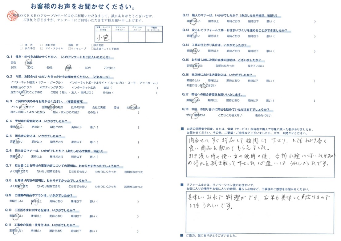 引き渡し時の使い方の説明の後、台所水栓に付いた手あかの汚れを拭き取って下さった心遣いは うれしかったです。