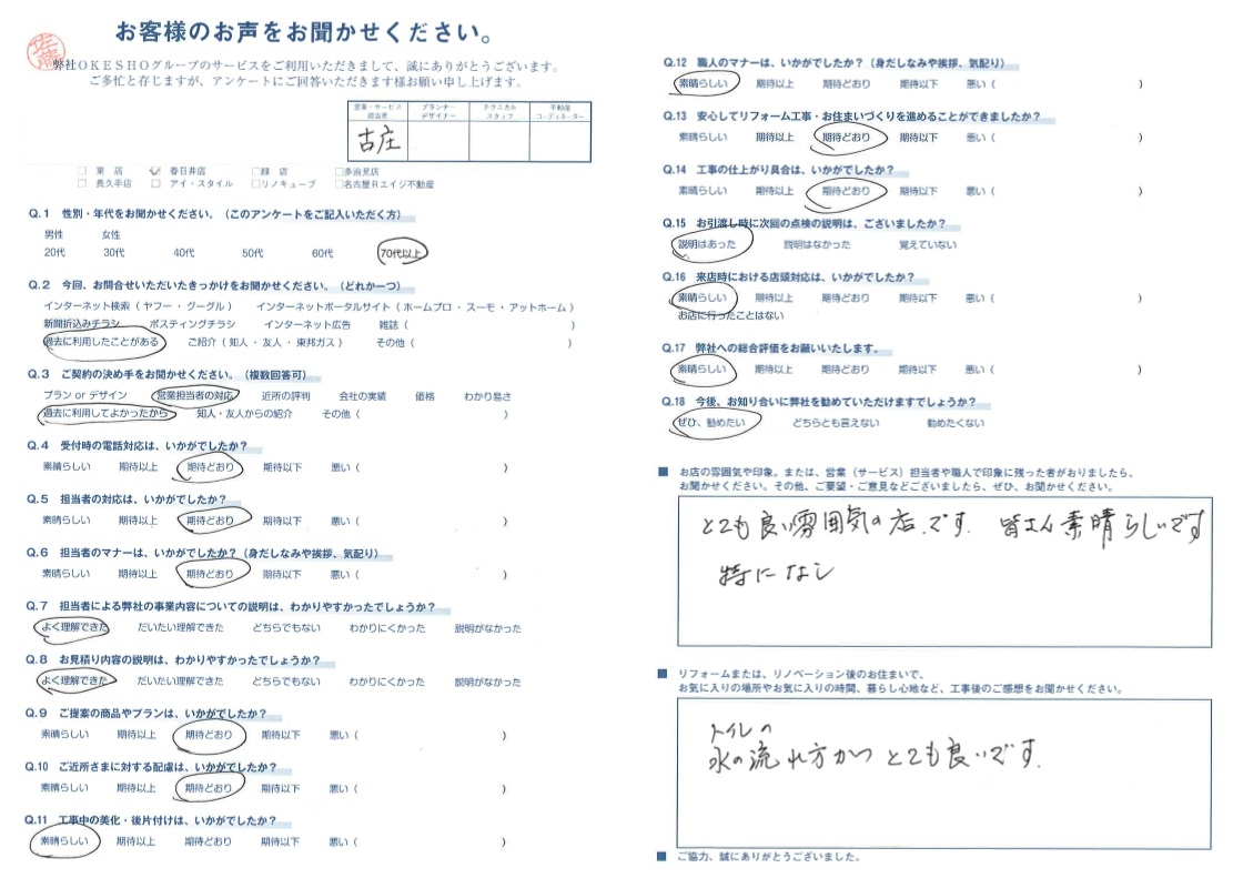 お店の雰囲気や印象。または、営業(サービス)担当者や職人で印象に残った者がおりましたら、お聞かせください。その他、ご要望・ご意見などございましたら、ぜひ、お聞かせください。