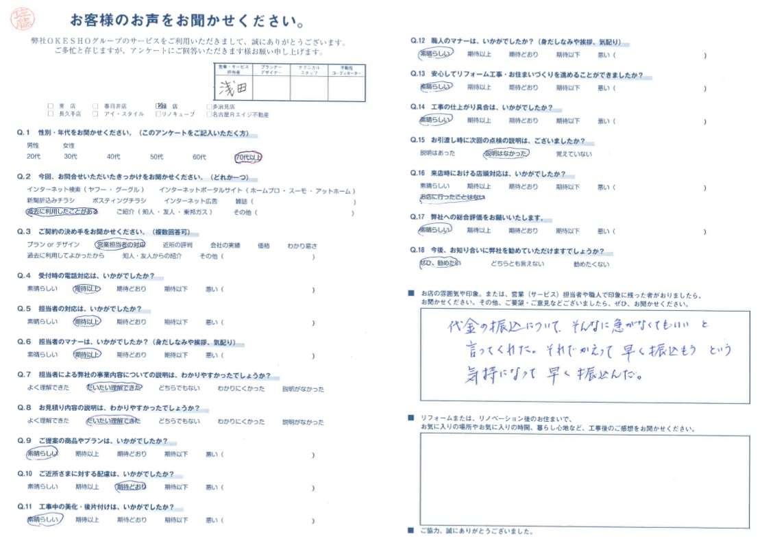 お店の雰囲気や印象。または、営業(サービス)担当者や職人で印象に残った者がおりましたら、お聞かせください。その他、ご要望・ご意見などございましたら、ぜひ、お聞かせください。