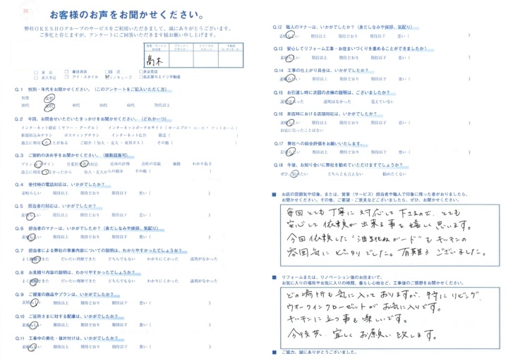 毎回とても丁寧に対応して下さるので、とても安心して依頼が出来る事を嬉しく思います。今回依頼した”油跳ねガード”もキッチンの雰囲気にピッタリでした。有難うございました。