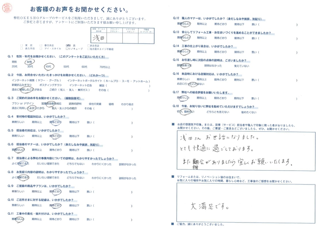 お店の雰囲気や印象。または、営業(サービス)担当者や職人で印象に残った者がおりましたら、お聞かせください。その他、ご要望・ご意見などございましたら、ぜひ、お聞かせください。