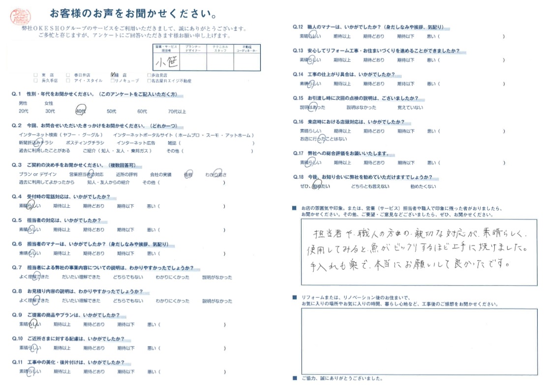 お店の雰囲気や印象。または、営業(サービス)担当者や職人で印象に残った者がおりましたら、お聞かせください。その他、ご要望・ご意見などございましたら、ぜひ、お聞かせください。