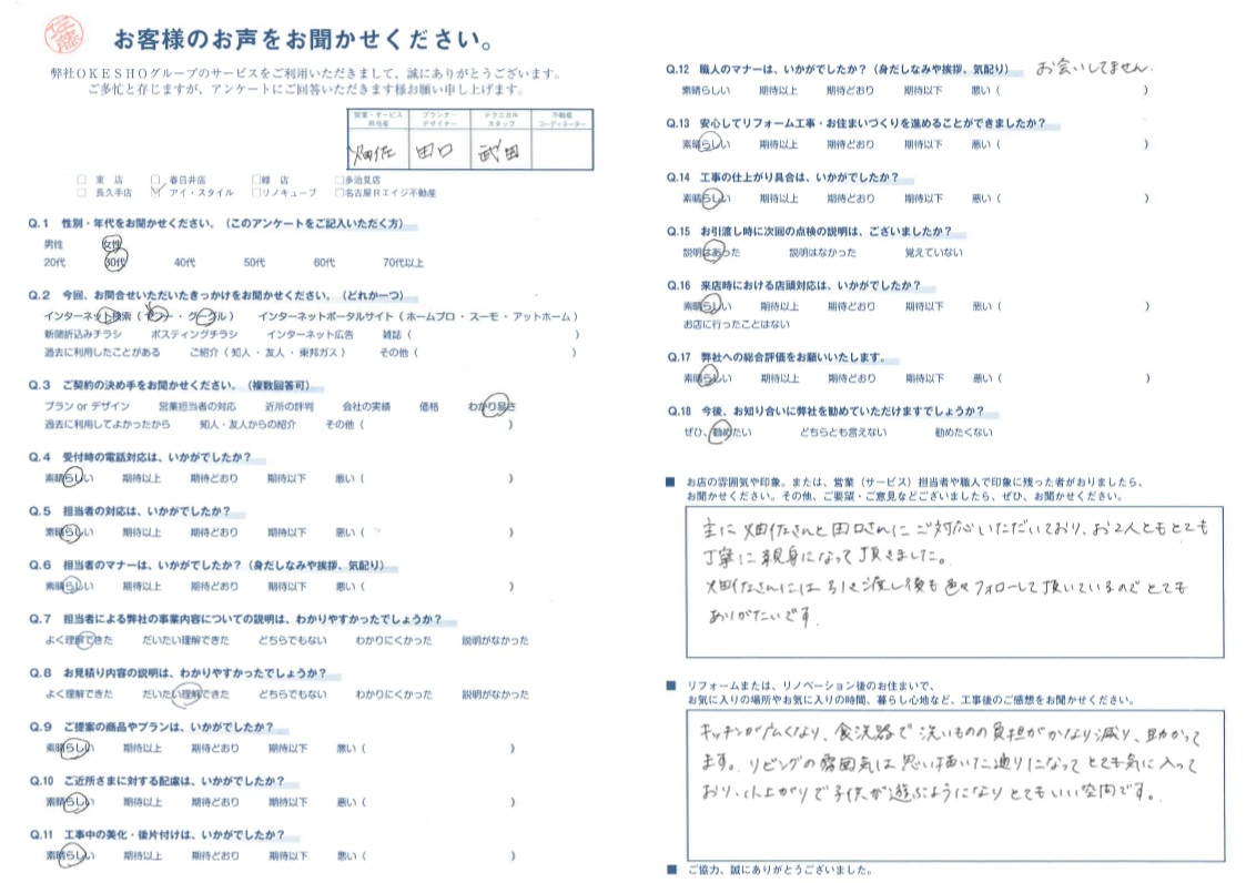 お店の雰囲気や印象。または、営業(サービス)担当者や職人で印象に残った者がおりましたら、お聞かせください。その他、ご要望・ご意見などございましたら、ぜひ、お聞かせください。