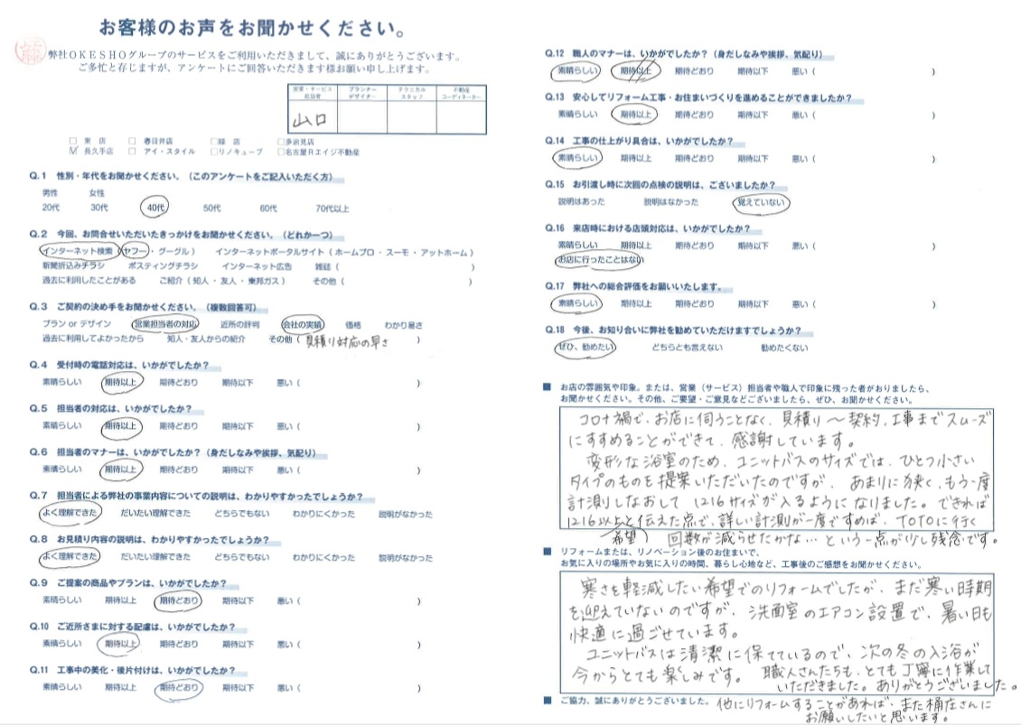 コロナ禍で お店に伺うことなく、見積り~契約・工事までスムーズにすすめることができて感謝しています。