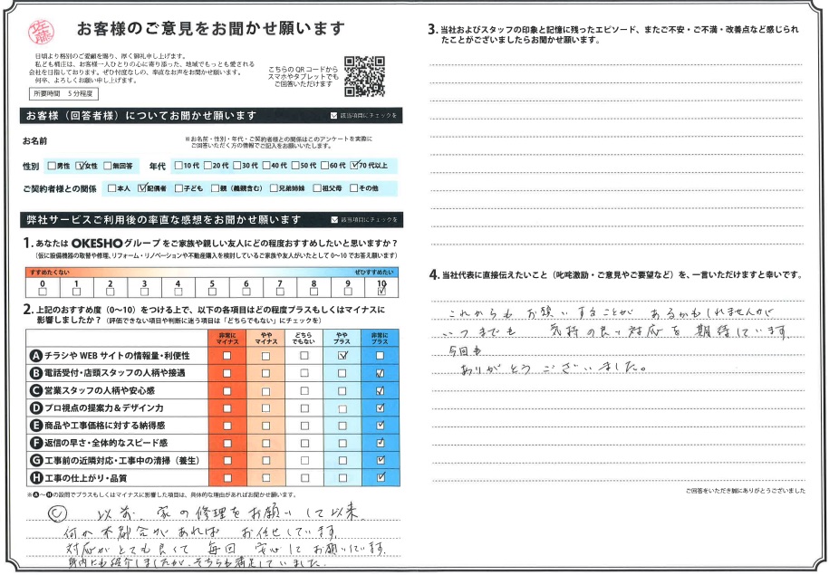 当社代表に直接伝えたいこと(叱咤激励・ご意見やご要望など)を、一言いただけますと幸いです。
