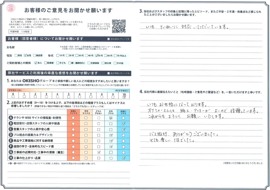 オケショーさんは、施工・アフターがよいので信頼しています。