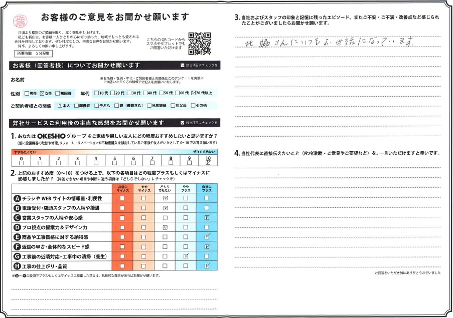 当社およびスタッフの印象と記憶に残ったエピソード、またご不安・ご不満・改善点など感じられたことがございましたらお聞かせ願います。