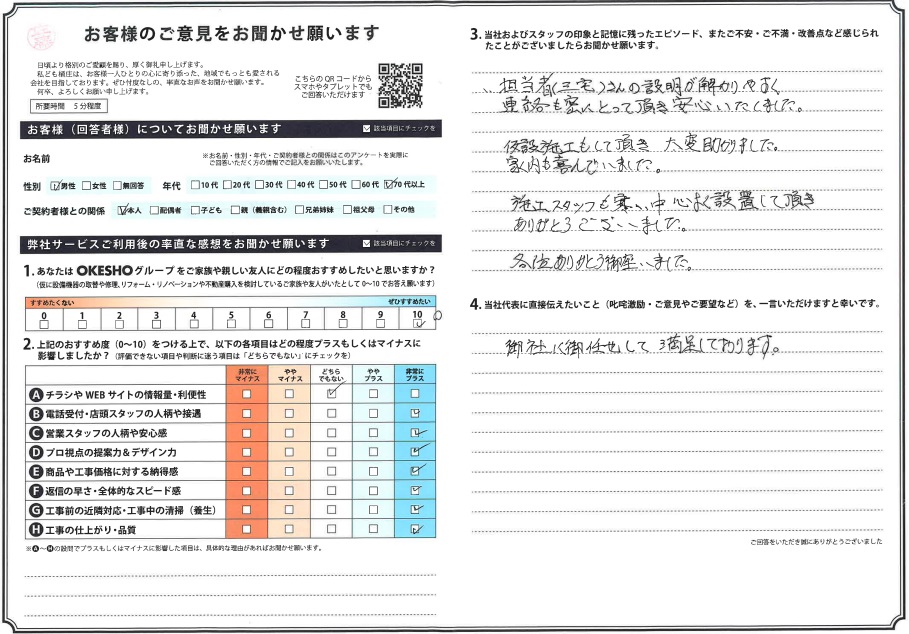 当社およびスタッフの印象と記憶に残ったエピソード、またご不安・ご不満・改善点など感じられたことがございましたらお聞かせ願います。