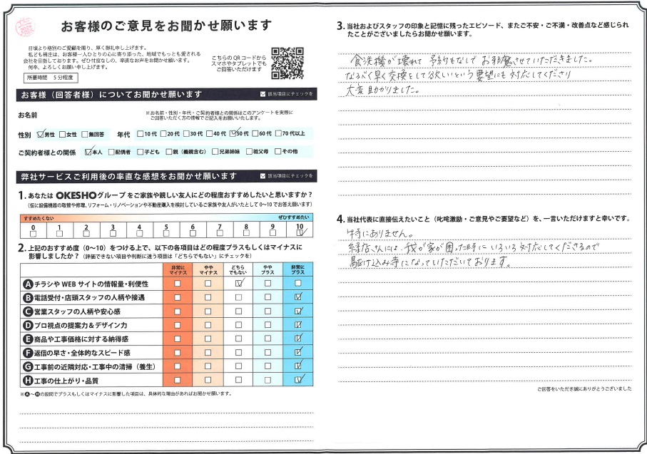 当社およびスタッフの印象と記憶に残ったエピソード、またご不安・ご不満・改善点など感じられたことがございましたらお聞かせ願います。