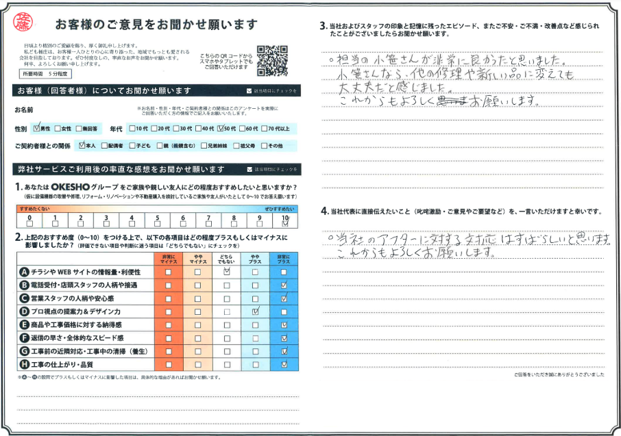 小笹さんなら、他の修理や新しい品に変えても大丈夫だと感じました。