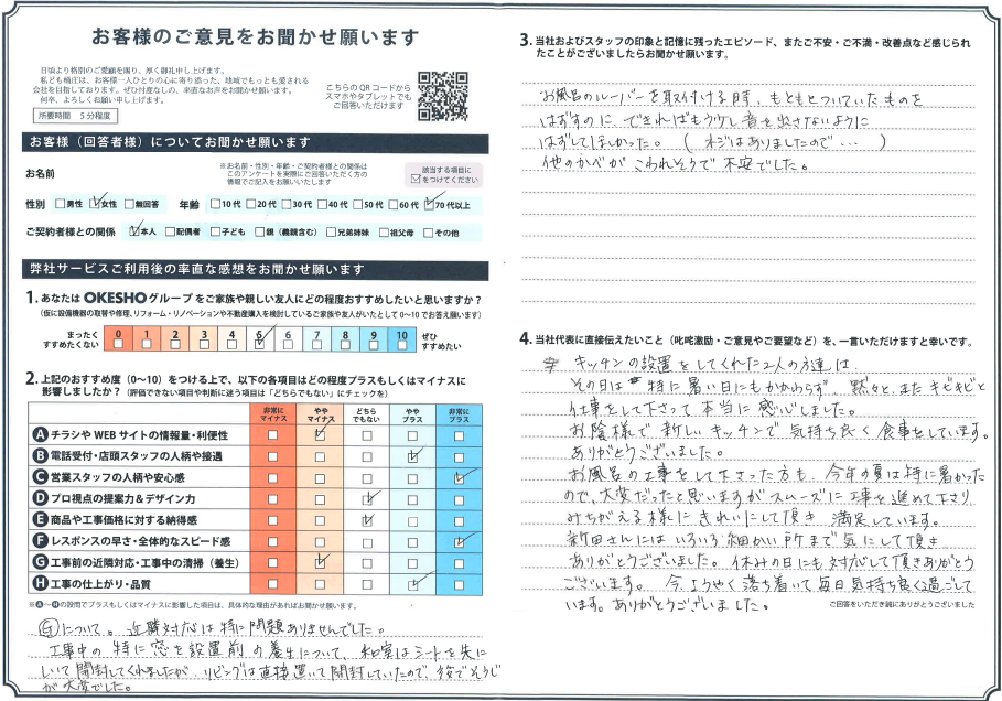 当社およびスタッフの印象と記憶に残ったエピソード、またご不安・ご不満・改善点など感じられたことがございましたらお聞かせ願います。