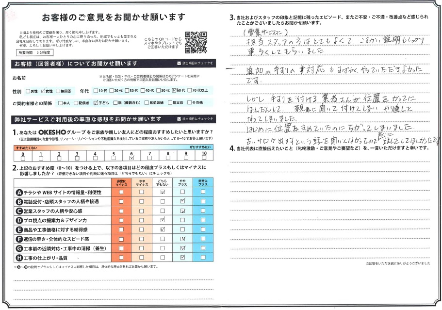 追加の手すりの対応もすばやくやっていただきよかったです。