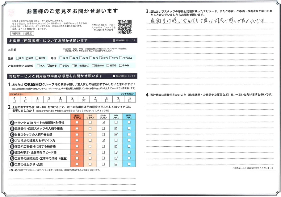 当社およびスタッフの印象と記憶に残ったエピソード、またご不安・ご不満・改善点など感じられたことがございましたらお聞かせ願います。