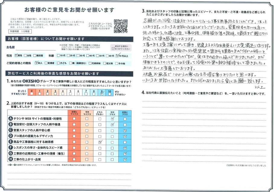 当社およびスタッフの印象と記憶に残ったエピソード、またご不安・ご不満・改善点など感じられたことがございましたらお聞かせ願います。