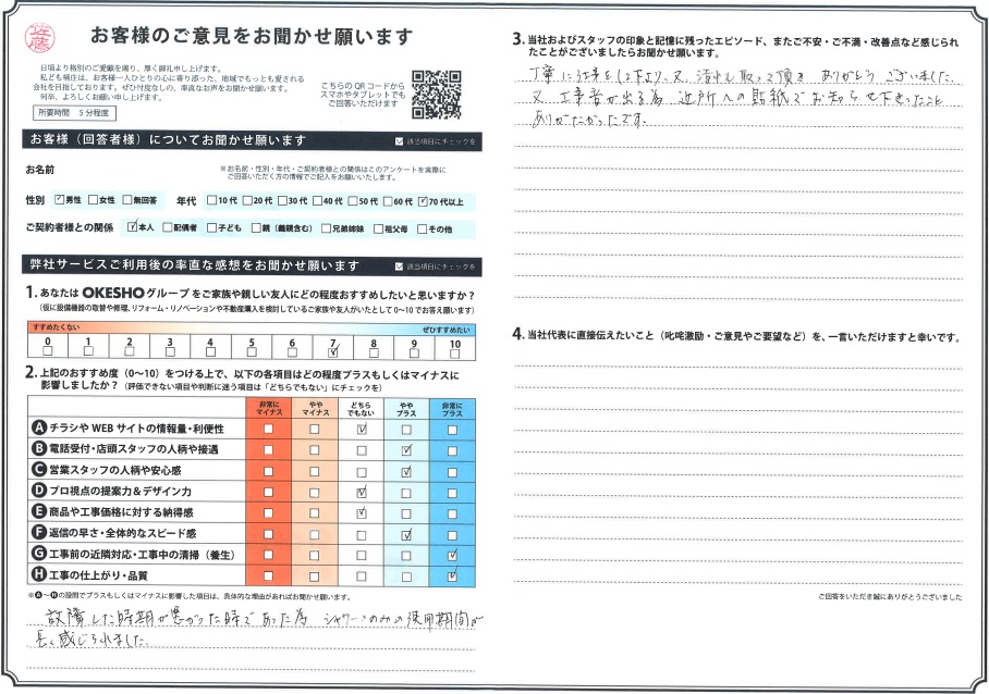 当社およびスタッフの印象と記憶に残ったエピソード、またご不安・ご不満・改善点など感じられたことがございましたらお聞かせ願います。