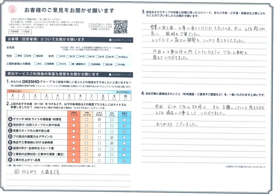 次回、どこかリフォームするときは、またお願いしたいと思えるほどとても満足の工事をしていただけました。