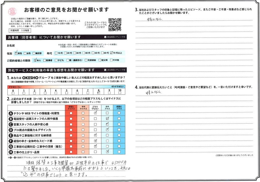 おすすめ度8点のお客様