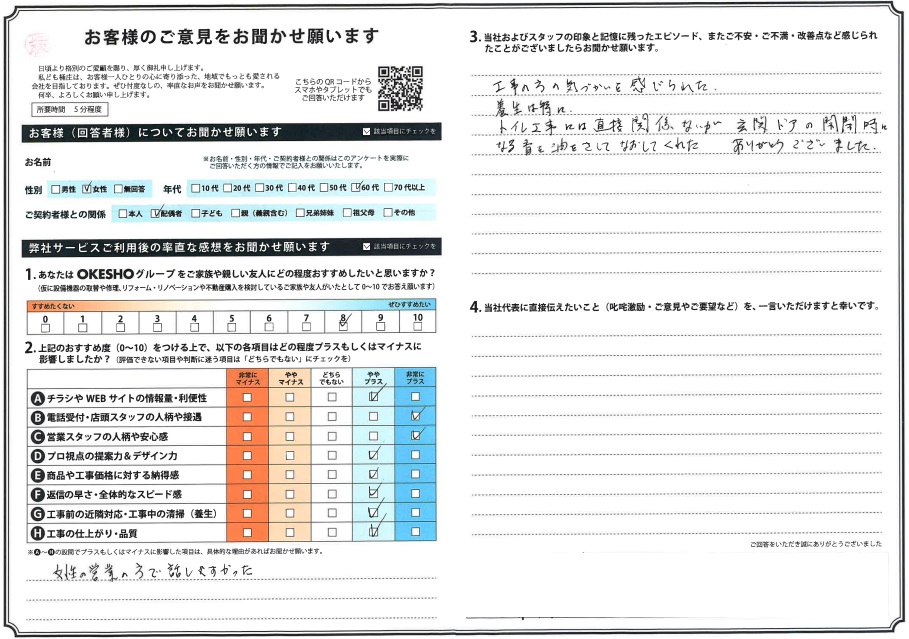 当社およびスタッフの印象と記憶に残ったエピソード、またご不安・ご不満・改善点など感じられたことがございましたらお聞かせ願います。
