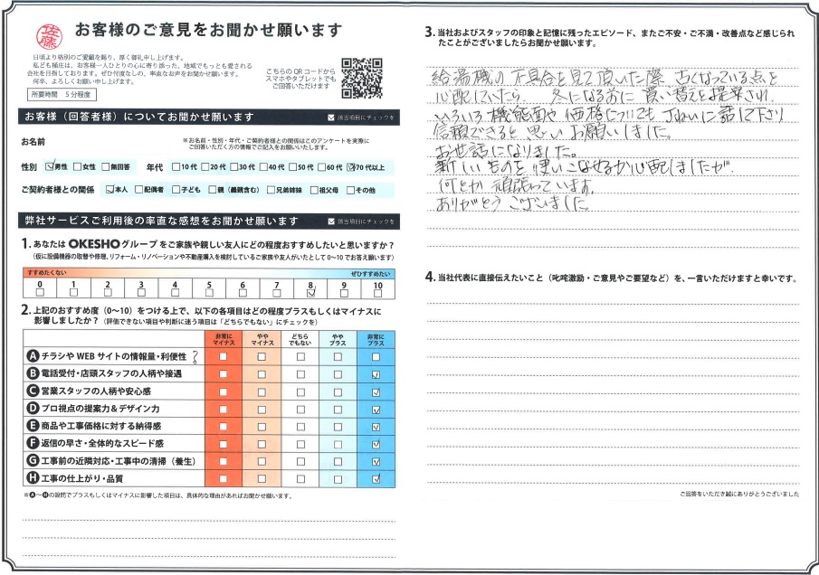 給湯器の不具合を見ていただいた際、古くなっている点を心配していたら、