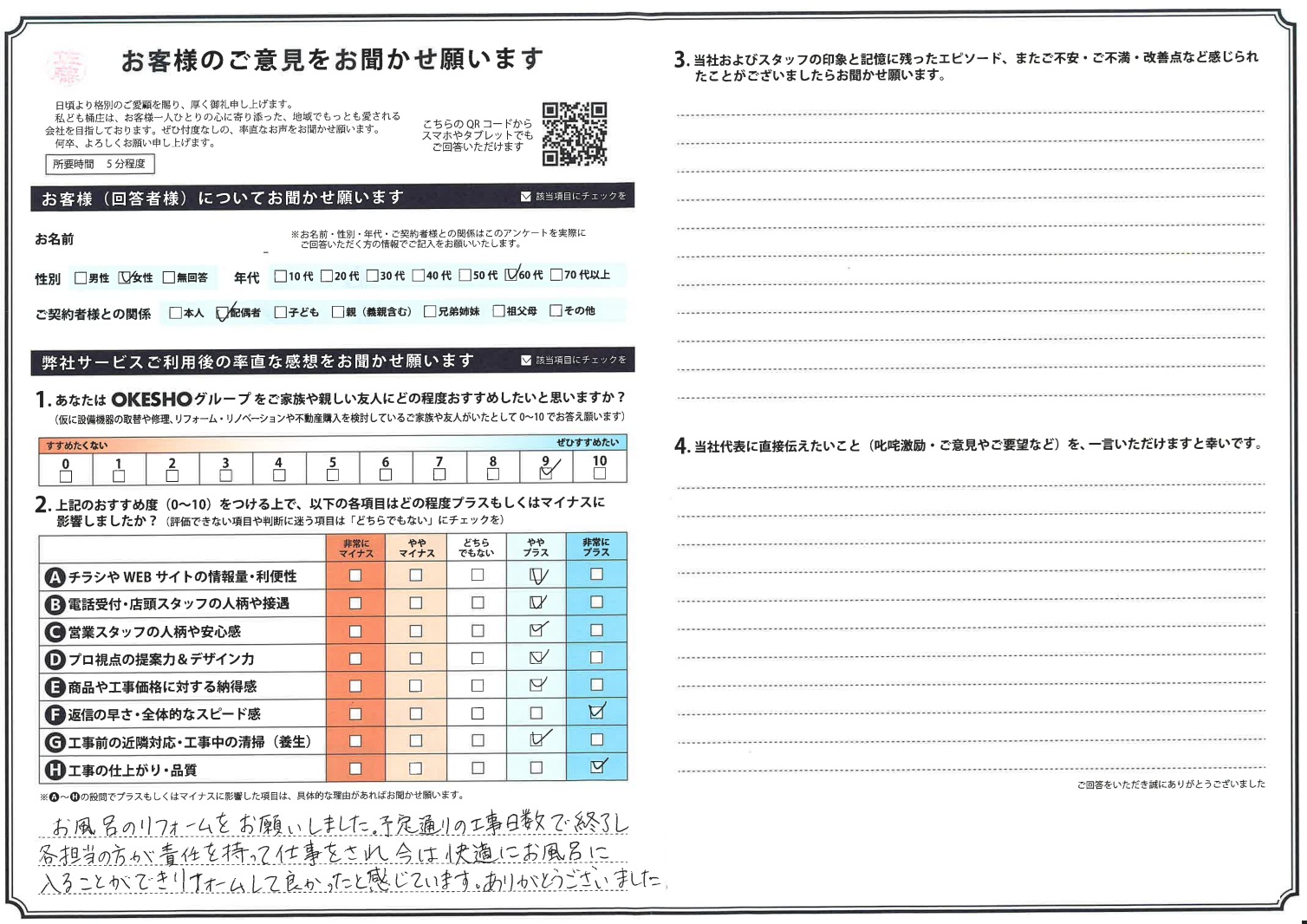 おすすめ度9点のお客様