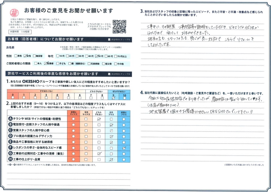 担当の方も、スタッフの方も、感じが良い対応で、こちらでリフォームを