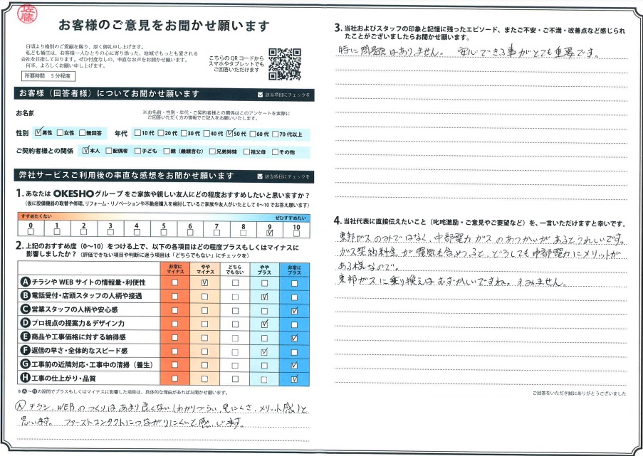 当社およびスタッフの印象と記憶に残ったエピソード、またご不安・ご不満・改善点など感じられたことがございましたらお聞かせ願います。