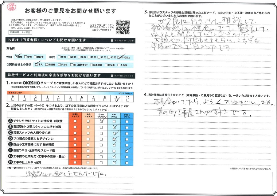 当社およびスタッフの印象と記憶に残ったエピソード、またご不安・ご不満・改善点など感じられたことがございましたらお聞かせ願います。