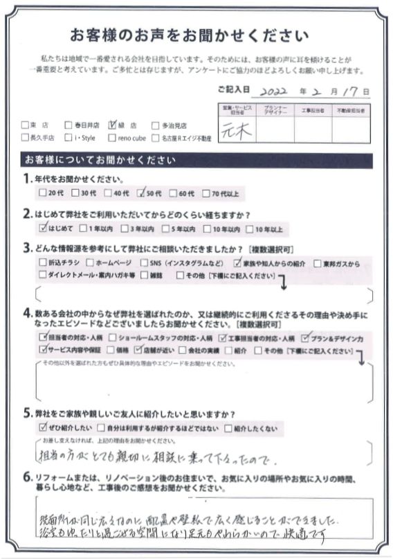 弊社をご家族や親しいご友人に紹介したいと思いますか?