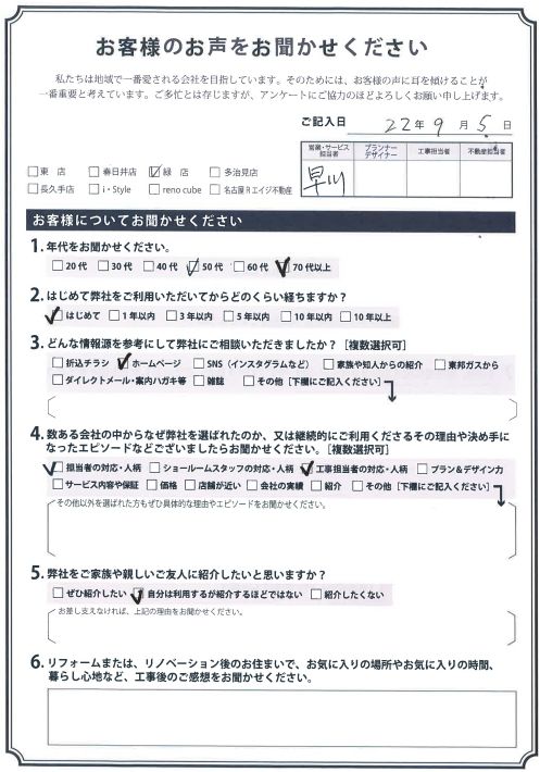 お客様アンケート一覧