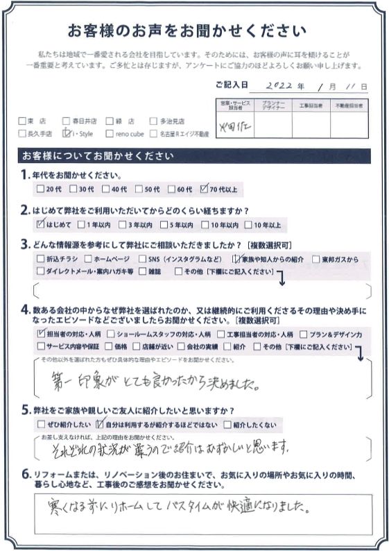 弊社をご家族や親しいご友人に紹介したいと思いますか?