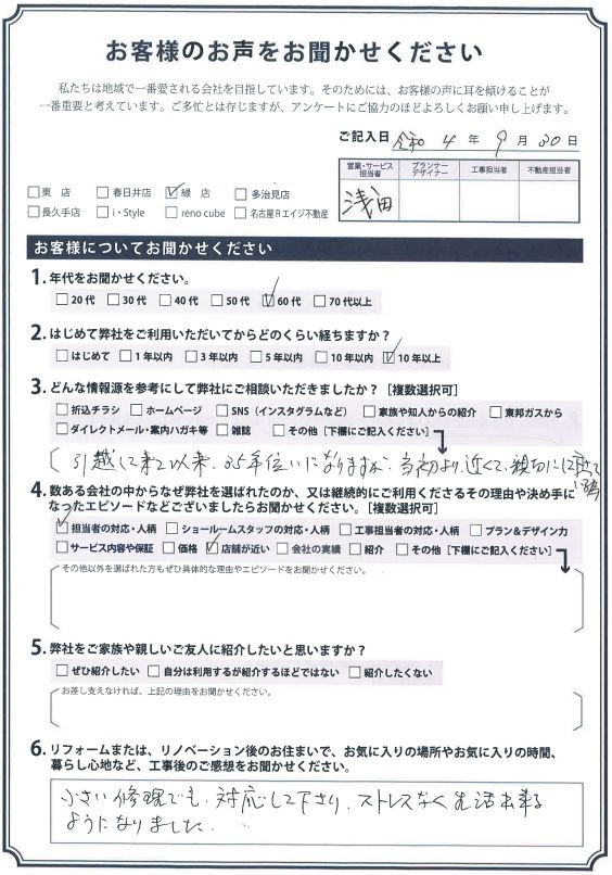 小さい修理でも対応して下さりストレスなく生活出来るようになりました。