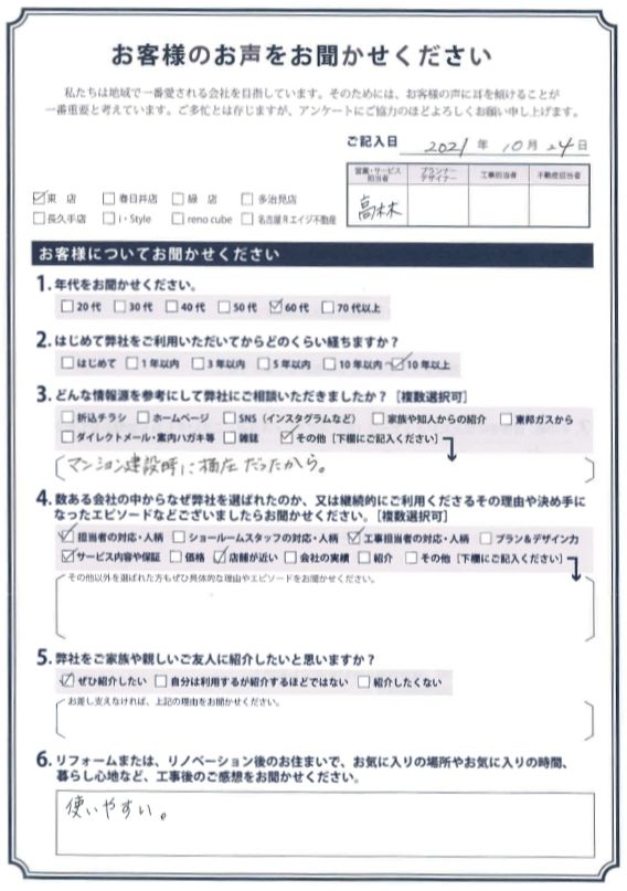 リフォームまたは、リノベーション後のお住まいで、お気に入りの場所やお気に入りの時間、暮らし心地など、工事後のご感想をお聞かせください。