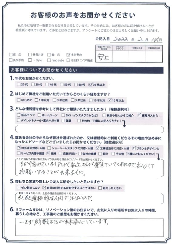 すっかり忘れていましたが、安上さんが覚えていてくれたので 安心してお願いすることが出来ました。