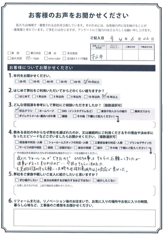 近くにショールームができたので もろもろの事はそちらにお願いしましたが 返事がかえって来なかったので…今回はそちらに決めました。