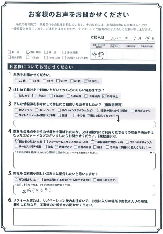 弊社をご家族や親しいご友人に紹介したいと思いますか?