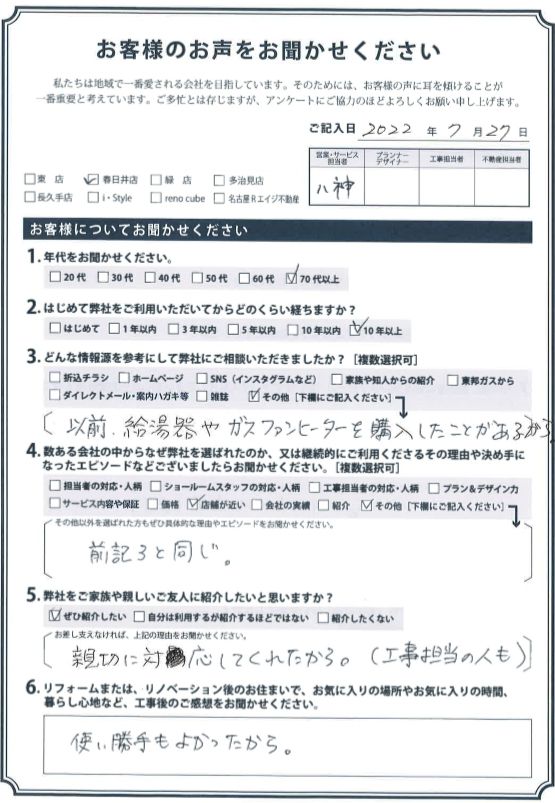 数ある会社の中から なぜ弊社を選ばれたのか、又は継続的にご利用くださるその理由や決め手になったエピソードなどございましたらお聞かせください。