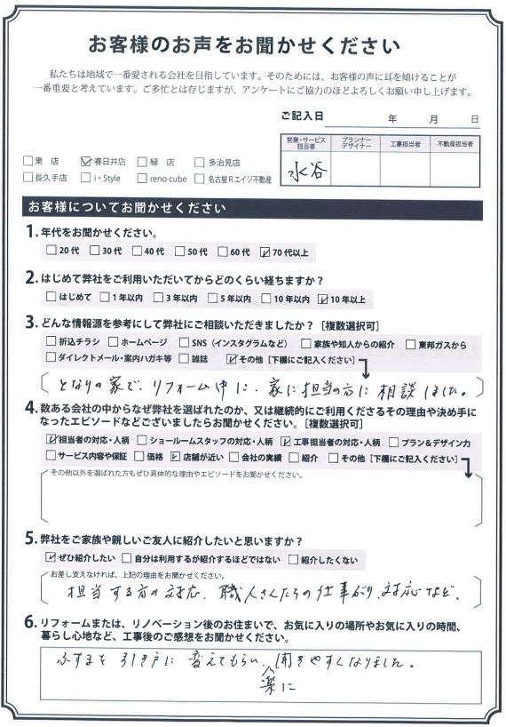 となりの家でリフォーム中に、家に担当の方に相談しました。