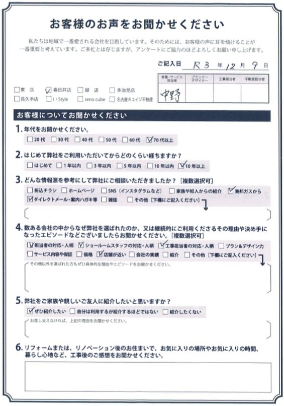 お客様アンケート一覧