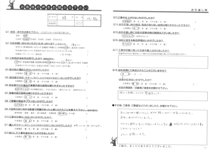 色々とわがままを聞いて下さって お陰様でかわいいお家になりました。本当にありがとうございました。