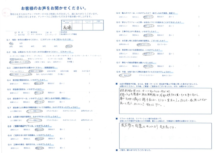 お店の雰囲気や印象。または、営業(サービス)担当者や職人で印象に残った者がおりましたら、お聞かせください。その他、ご要望・ご意見などございましたら、ぜひ、お聞かせください。
