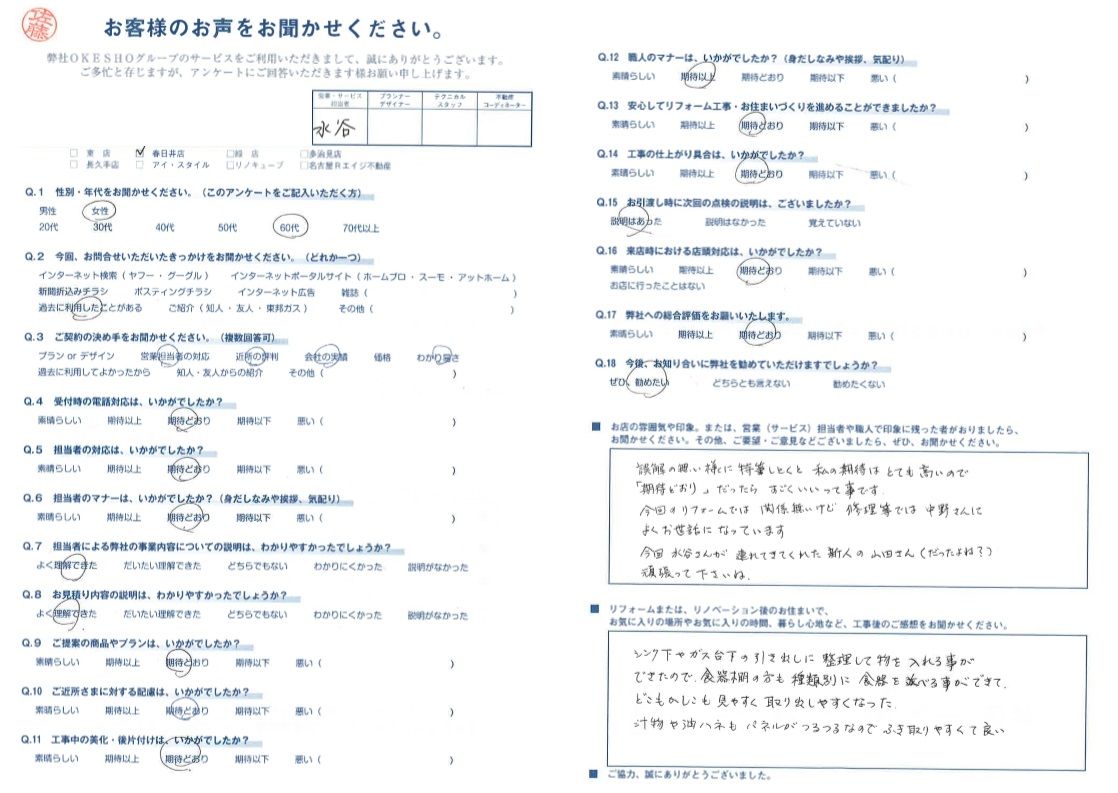 お店の雰囲気や印象。または、営業(サービス)担当者や職人で印象に残った者がおりましたら、お聞かせください。その他、ご要望・ご意見などございましたら、ぜひ、お聞かせください。