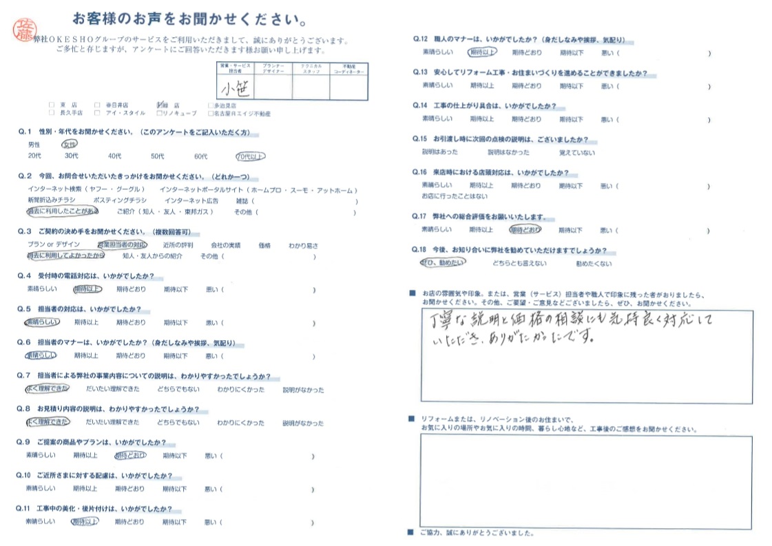 お店の雰囲気や印象。または、営業(サービス)担当者や職人で印象に残った者がおりましたら、お聞かせください。その他、ご要望・ご意見などございましたら、ぜひ、お聞かせください。