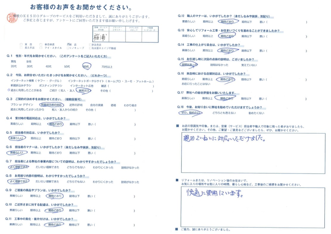 お店の雰囲気や印象。または、営業(サービス)担当者や職人で印象に残った者がおりましたら、お聞かせください。その他、ご要望・ご意見などございましたら、ぜひ、お聞かせください。