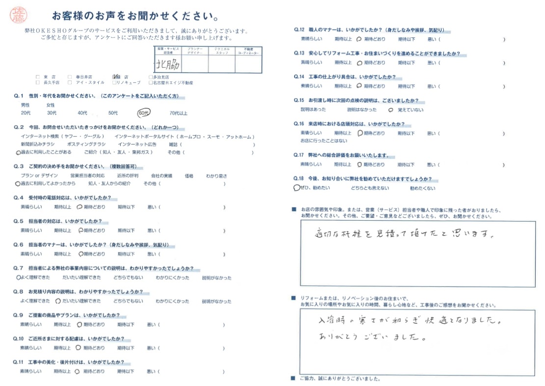 入浴時の寒さが和らぎ快適となりました。ありがとうございました。