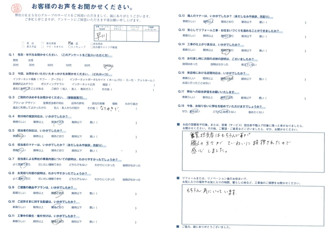 お店の雰囲気や印象。または、営業(サービス)担当者や職人で印象に残った者がおりましたら、お聞かせください。その他、ご要望・ご意見などございましたら、ぜひ、お聞かせください。