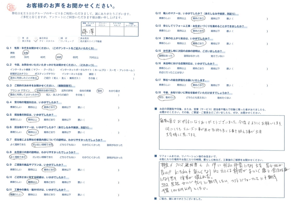 お店の雰囲気や印象。または、営業(サービス)担当者や職人で印象に残った者がおりましたら、お聞かせください。その他、ご要望・ご意見などございましたら、ぜひ、お聞かせください。
